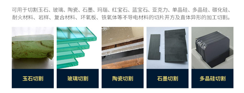主要用于切割磁性材料、水晶、陶瓷、化合物、氧化物、紅藍(lán)寶石、單晶硅等各種硬脆性材料。